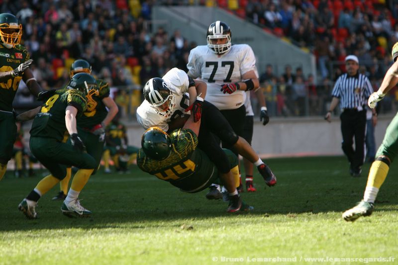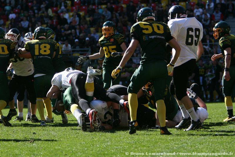 C’est sous un soleil printanier qu’avait lieu cet après midi au MMArena la rencontre de football américain entre les Caïmans du Mans et les Dockers de Nantes. Une rencontre comptant pour le Championnat de France D2 – Casque d’Or – Un véritable succès pour cette rencontre de sport amateur devant plus de 2 600 spectateurs !